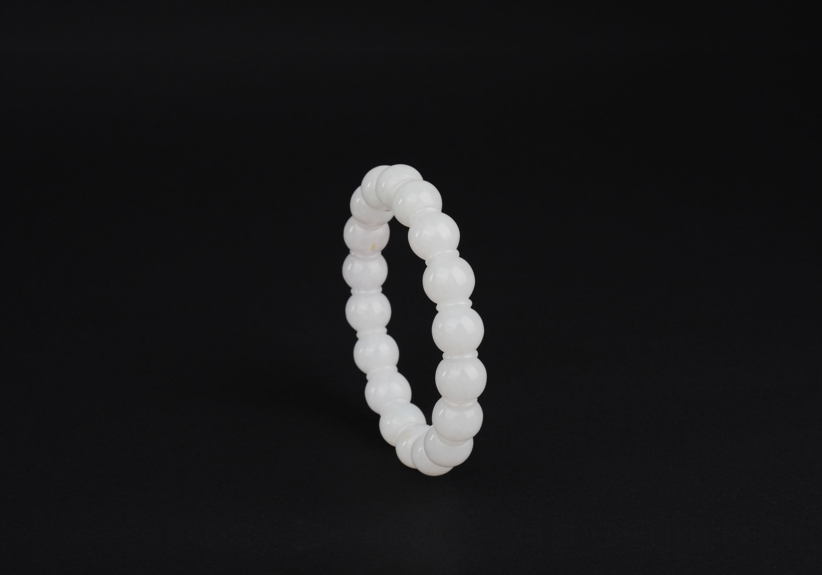 由十八颗圆珠及十八颗隔片竞相环接,看似手串、实则手镯。